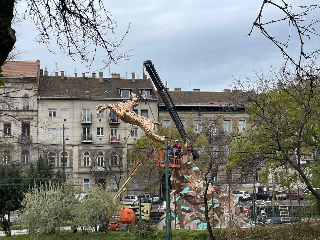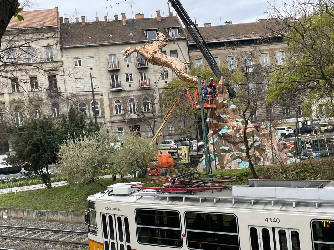 A fővárosiak szerda reggel egy újabb érdekes dologra figyelhettek fel. Ugyanis a Széll Kálmán téren, a Postapalota előtt a helyére emelték azt a termetes aranyszobrot, ami a csodaszarvast ábrázolja. Az ugró csodaszarvas egyébként több mint hat méter magas. Egy bizonyos ponton pedig úgy fest, mintha a levegőben repülne.