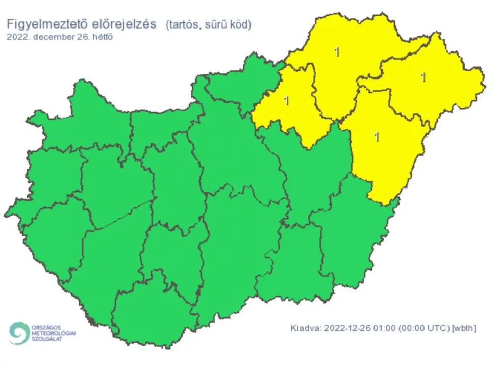 Az Országos Meteorológiai Szolgálat a keleti megyékre elsőfokú riasztást adott ki a tartós köd miatt.