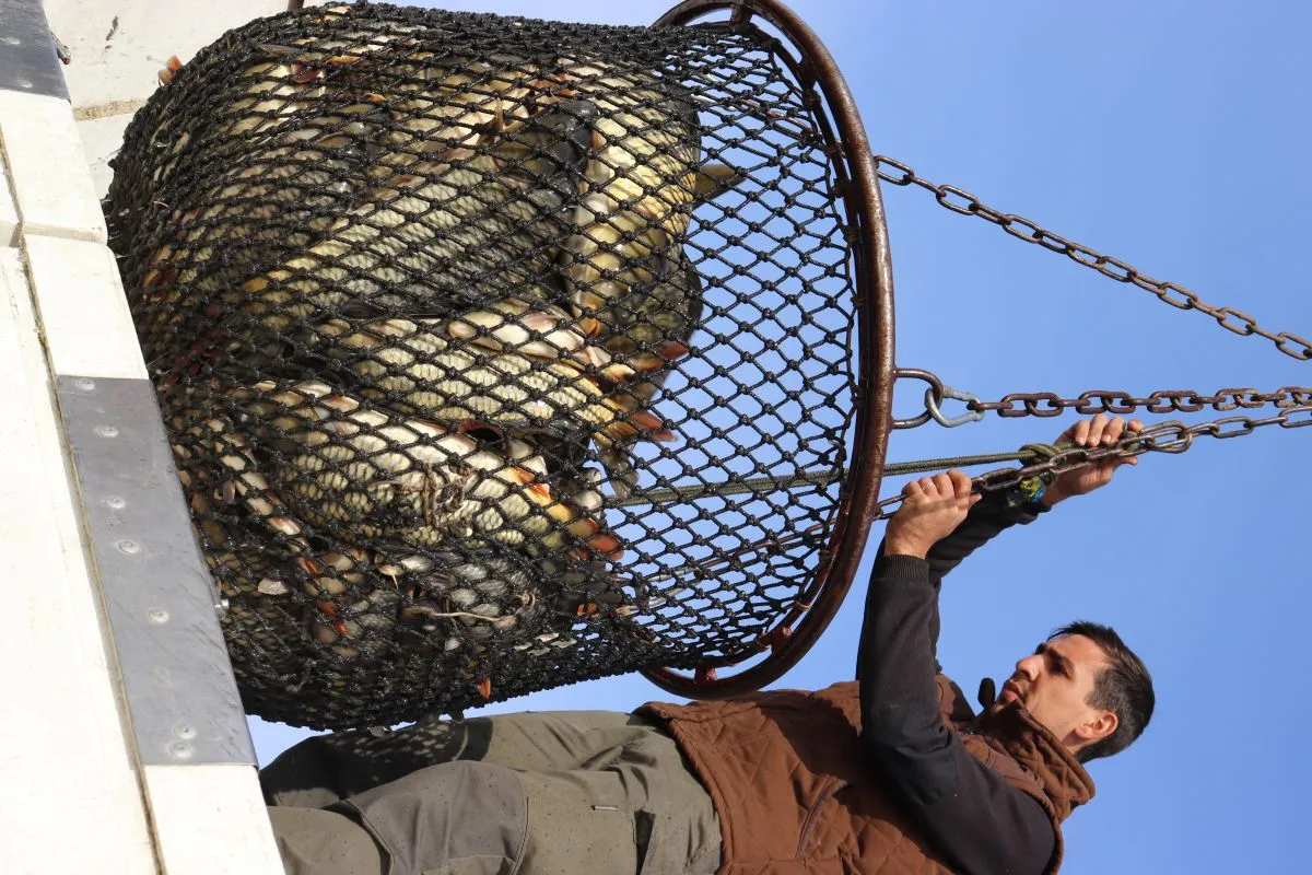 A tóból lehalászott halak egy beltéri medencében, egy másik telephelyen várják majd, hogy frissen a családok asztalára kerüljenek.