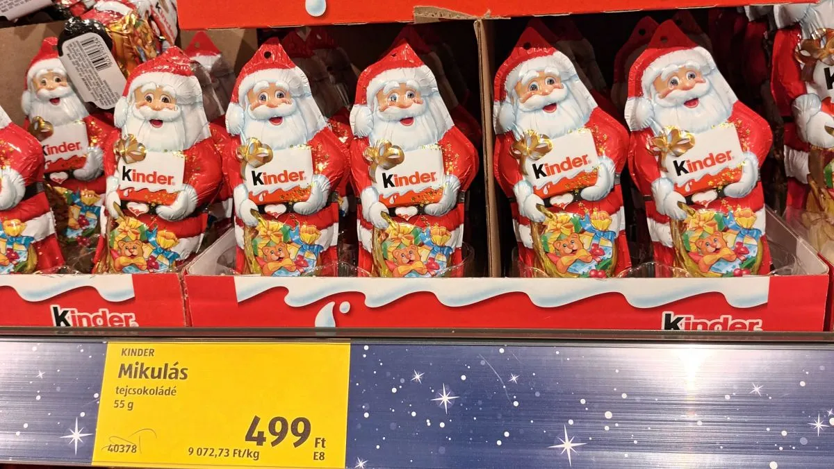 Az egyik német üzletláncban az egyik legolcsóbb karácsonyi csomag 1079 forintba kerül. A pénzünkért csak pár darab kisebb csokoládégolyót, és egy kisebb Mikuláscsokit kapunk. Külön-külön már jóval nagyobb a szórás az egyes márkák között. Egy 55 grammos Kinder mikulásért kereken 500 forintot kérnek el, a 110 grammos kiszerelés viszont arányaiban olcsónak mondható, mivel csak 900 forint.