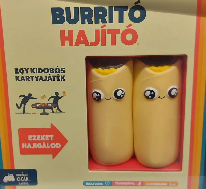 A kínálatban szerepel burritó bunyó, burritó párbaj és burritó háború is. Miközben a csomagolás aranyosan néz ki, ha jobban belegondolunk ebbe a sajátságos partijátékba, akkor az ember már azelőtt fogja a fejét, mielőtt eltalálnák.