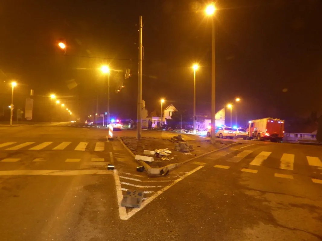 először egy jelzőlámpát és egy irányjelző táblát döntött ki, majd a járdára hajtva a lánckorlát betonelemét is kitörte, leszáguldott egy lépcsősoron, végül pedig egyenesen a parkoló autók tetejére csapódott.