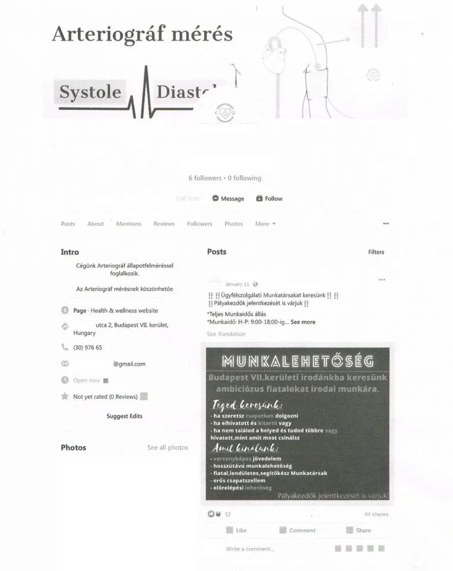A dolog akkor vett teljesen szürreális fordulatot, amikor a telefonszámot, amit a kamu oknyomozó adott meg (levelében az utolsó két számot kitakartuk), megtaláltuk a Google és a Facebook nyilvántartásában, méghozzá egy időseknek egészségügyi szolgáltatásokat nyújtó céghez rendelve. „Cégünk arteriográf állapotfelméréssel foglalkozik” – áll a cég Facebook-oldalán. Az üzlet logójában a szemfülesebbek a K.D. monogramot fedezhetik fel, ő az üzletvezető, egyben fotókkal bizonyíthatóan a Bódi testvérek barátja.