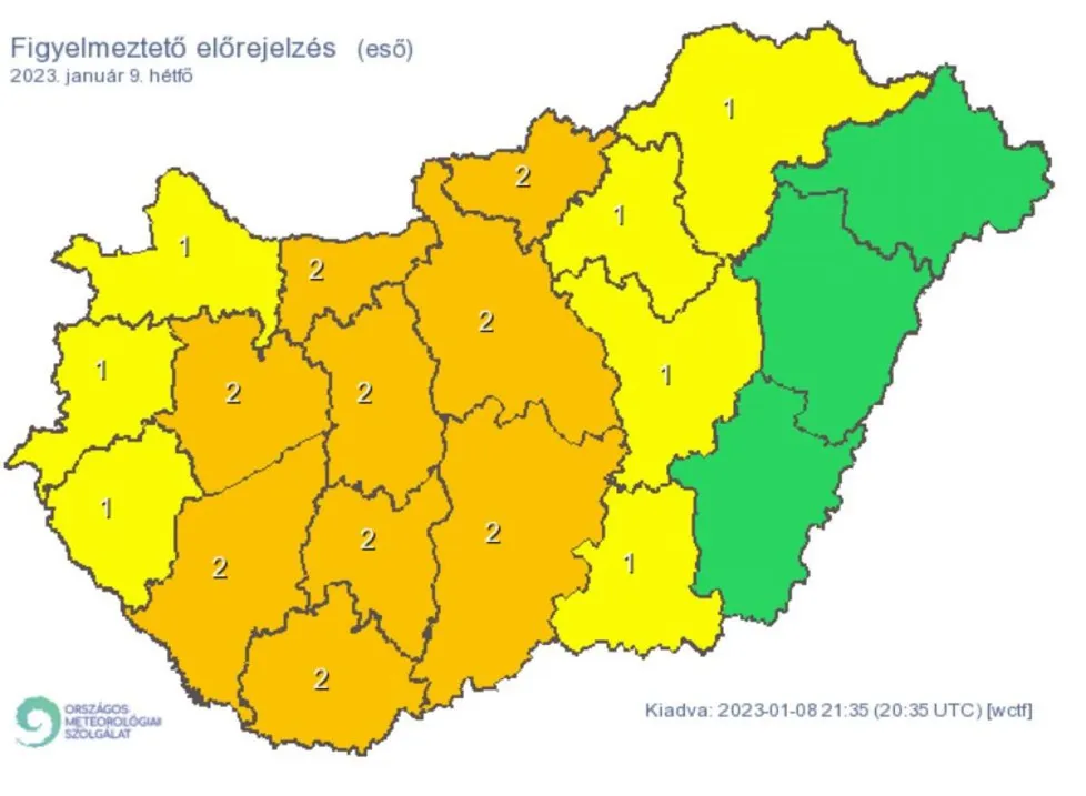 Az Országos Meteorológiai Szolgálat több vármegyére is másodfokú riasztást adott ki az esőzés miatt.