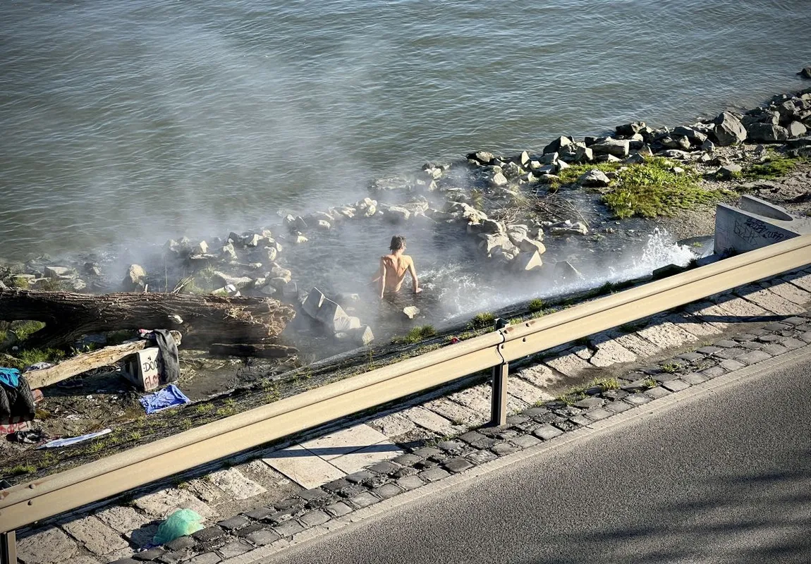 Budapesten járunk. A hidegen szikrázó napon 6 fok van. A Duna alig 5 fokos. A fürdőző hosszú perceken át ül a folyami vízben. Mégsem fázik, mert a Gellért gyógyfürdő kifolyójánál 20 fokos a folyóba ömlő víz. A kővel körülvett illegális fürdőhelyet eddig csak tavasztól használták. Ez az ismeretlen idegen nyitotta meg az idei „szezont.”