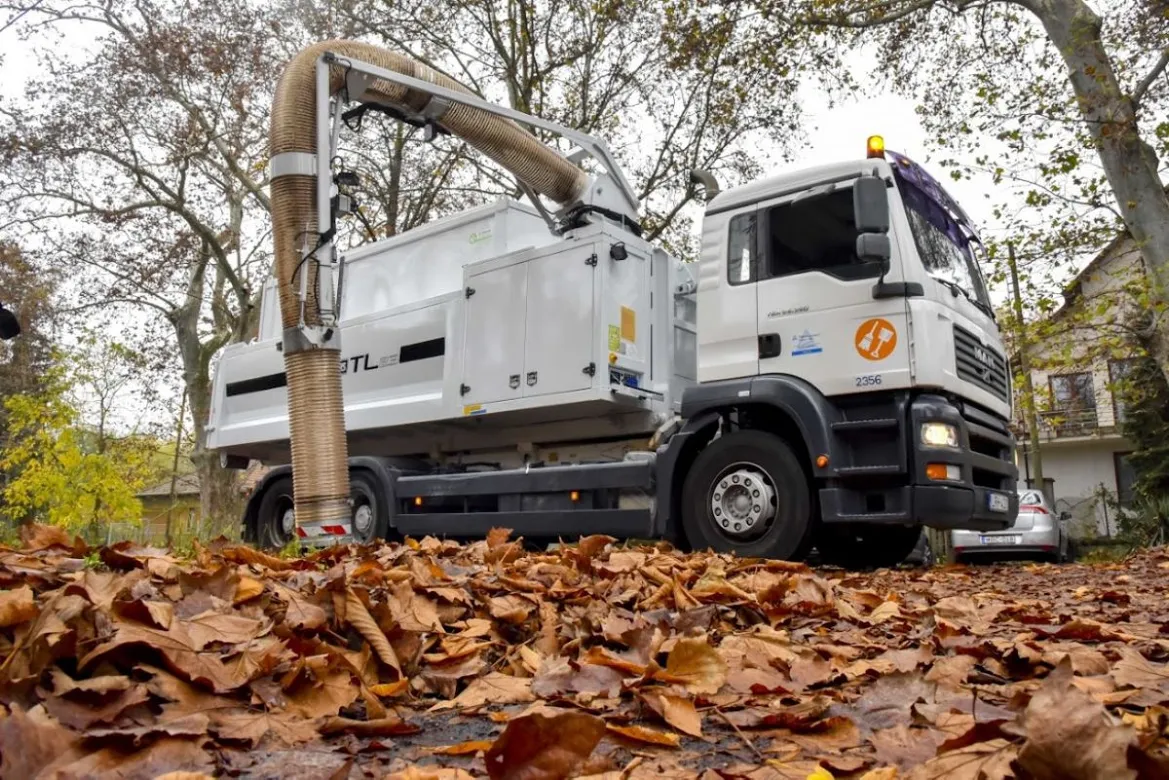 Különös gép jelent meg a főváros közterületein: egy ormányos lombszívó.