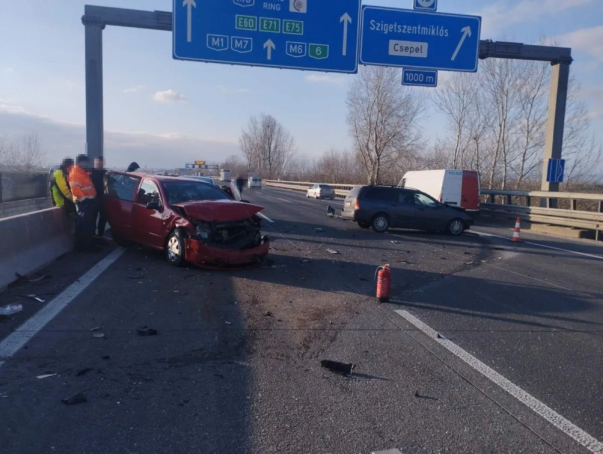Három személyautó ütközött össze az M0-s autóút 20-as kilométerénél, a szigetszentmiklósi lehajtó közelében, az M6-os autópálya felé vezető oldalon. A balesethez riasztott fővárosi hivatásos tűzoltók áramtalanították a járműveket.