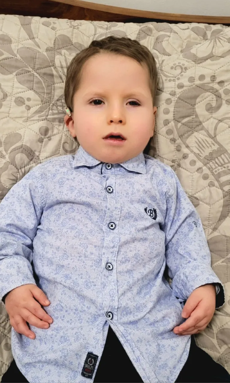 – Amikor az intenzív után lekerültünk a belgyógyászatra, akkor kezdtem el gyanakodni, hogy a hallásával is baj van. Itthon egyre biztosabbá vált a gyanúm, és 2021 szeptember végén sikerült megcsináltatnunk a hallásvizsgálatot. Kiderült, hogy mindkét fülén nagyon nagy mértékű idegi hallásvesztése van. Tavaly decemberben sikerült a cochlearis implantátum beültetése, ezzel esélyt kaptunk, hogy a kisfiunk jobb fülére vissza tudjuk adni a hallását. – mondta reménykedve az édesanyja.