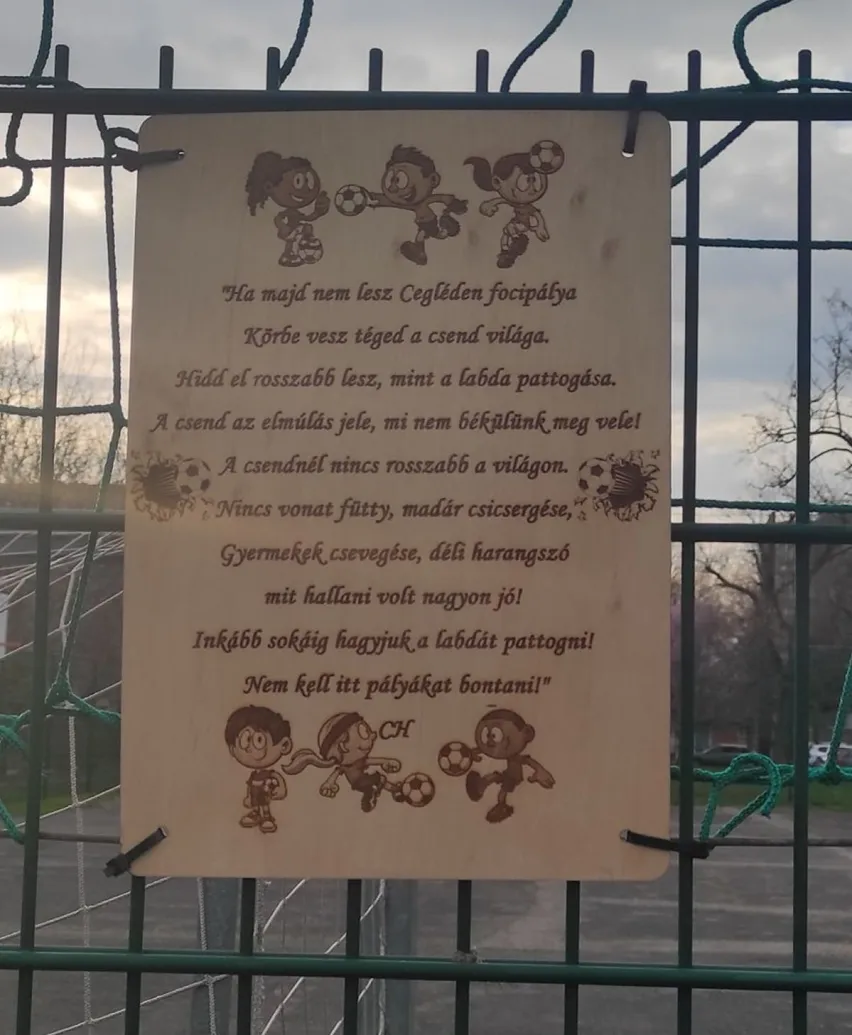 A pálya 1979ben épült a panelházakkal együtt. A két feljelentő meg 20 éve lakik itt, ha nem tetszik neki ez a városi élet, költözzön erdőbe vagy tanyára.