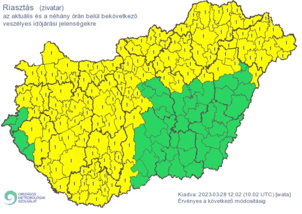 Több vármegyét érintő riasztást adtak ki a meteorológusok.