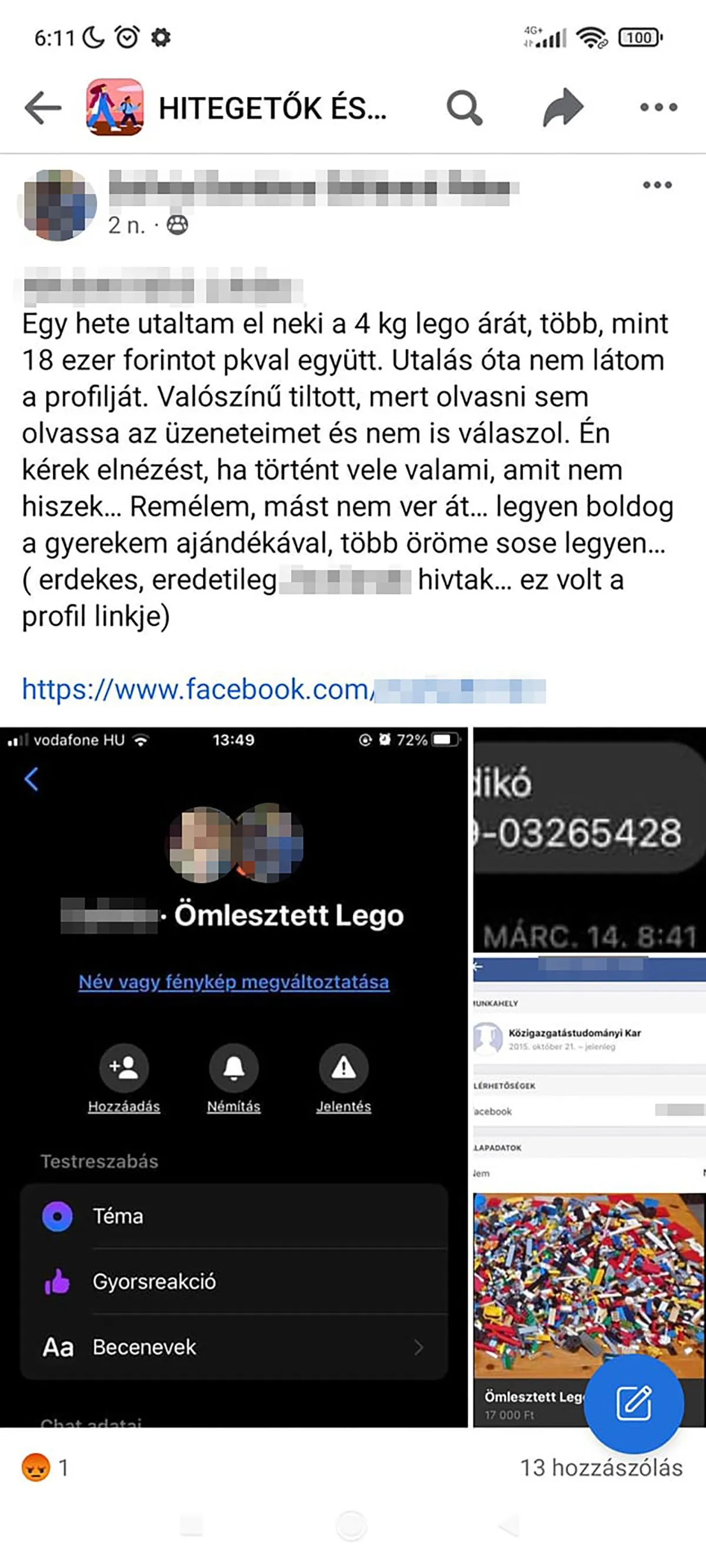 Az egyik áldozatot több, mint 18 ezer forinttal rövidítették meg a kamu LEGO-dílerek. Ráadásul az átverés után nevet változtattak a kamu profilon, hogy másokat is áttudjanak verni vele.