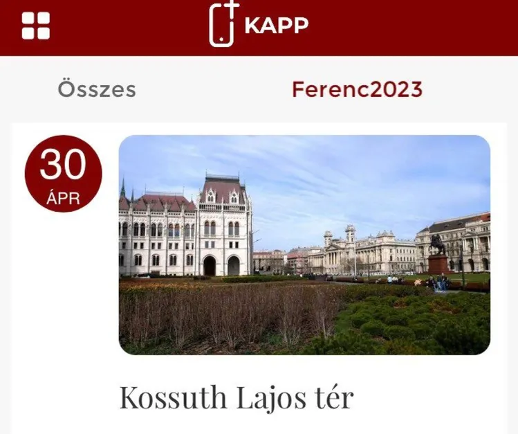 A katolikus mobilapplikációban, vagyis a KAPP-ban a Magyar Katolikus Egyház hírei, eseményei és hasznos letölthető anyagai kaptak helyet, de rengeteg hasznos információ található benne a pápalátogatásról is. Az applikációt megnyitva szinte egyből felugrik Ferenc pápa fotója, és a részletek gombra kattintva megtalálhatjuk az összes fontos információt, amit érdemes tudnunk a Szentatya hazai látogatásáról.