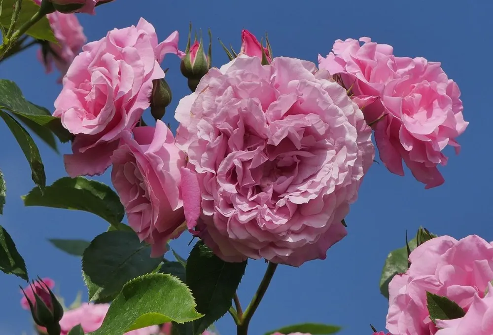 A két-három méter magas, erőteljes bokorrá fejlődő rózsák a 8-10 cm átmérőjű fejekkel olyanok lesznek együtt, mint egy rózsaszínű bokor.