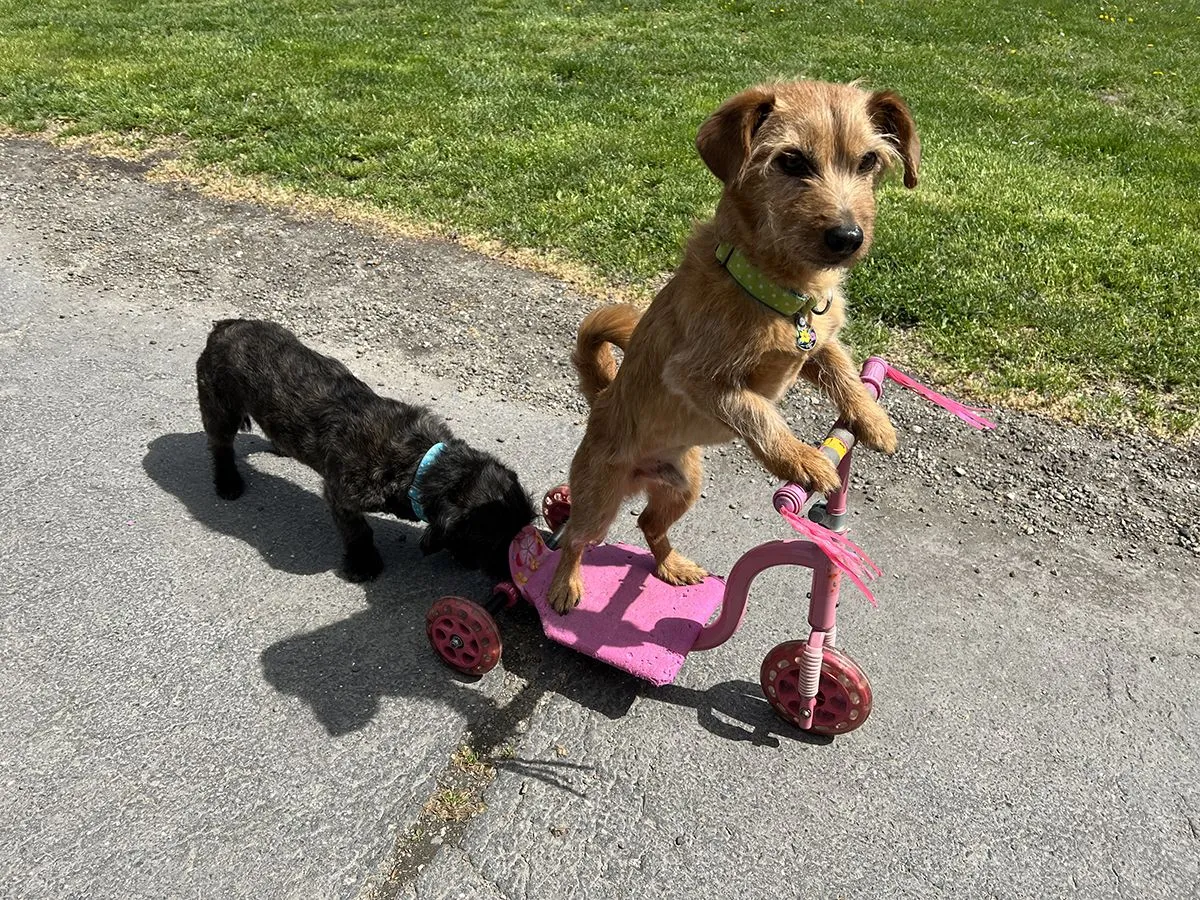 A kutyák szemmel láthatólag nagyon élvezik végrehajtani a trükköket, amiket elsajátítottak: a rollerezés, vagy szemétszedés után farokcsóválva fogadják jutalomfalatjaikat.