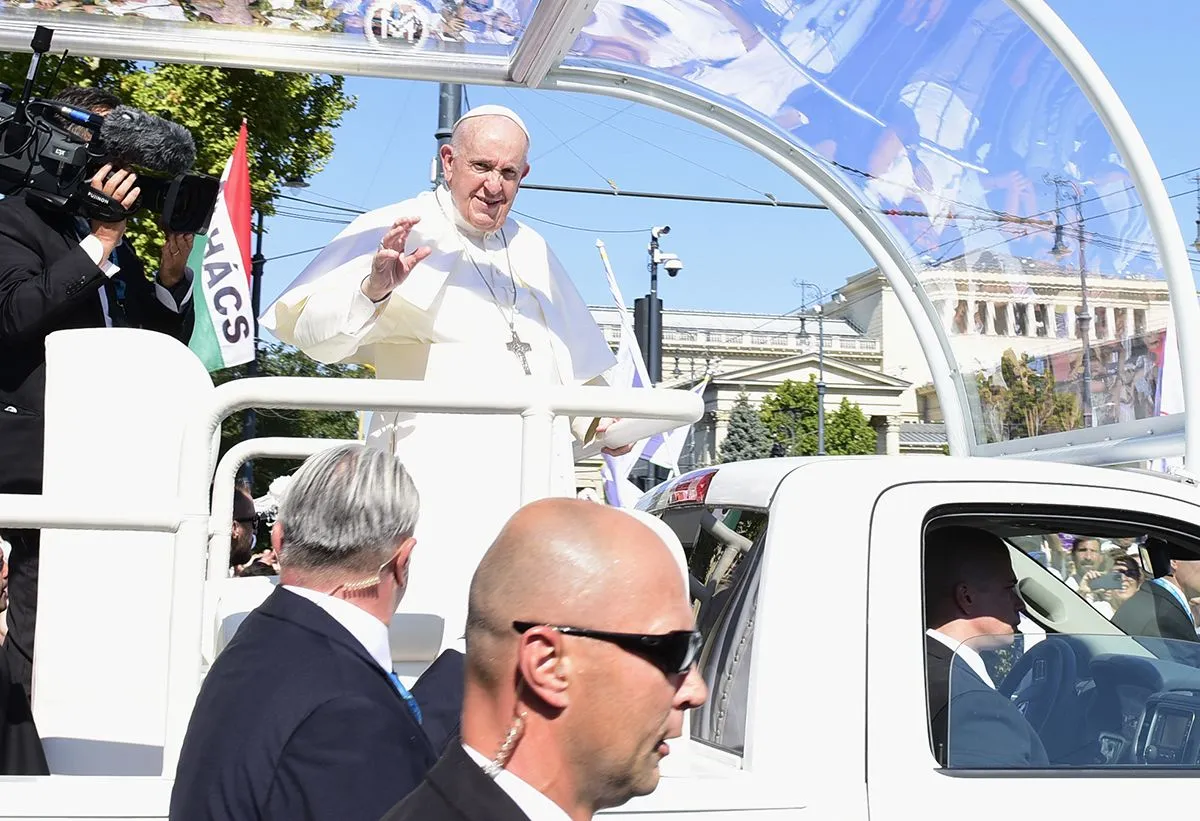 A katolikus egyházfő repülőgépe péntek délelőtt száll le a Liszt Ferenc-repülőtéren. Hivatalos fogadtatását követően a pápát a Sándor-palota előtti téren Novák Katalin köztársasági elnök fogadja. Az államfőnél tett udvariassági látogatását követően az egyházfő Orbán Viktor miniszterelnökkel találkozik.