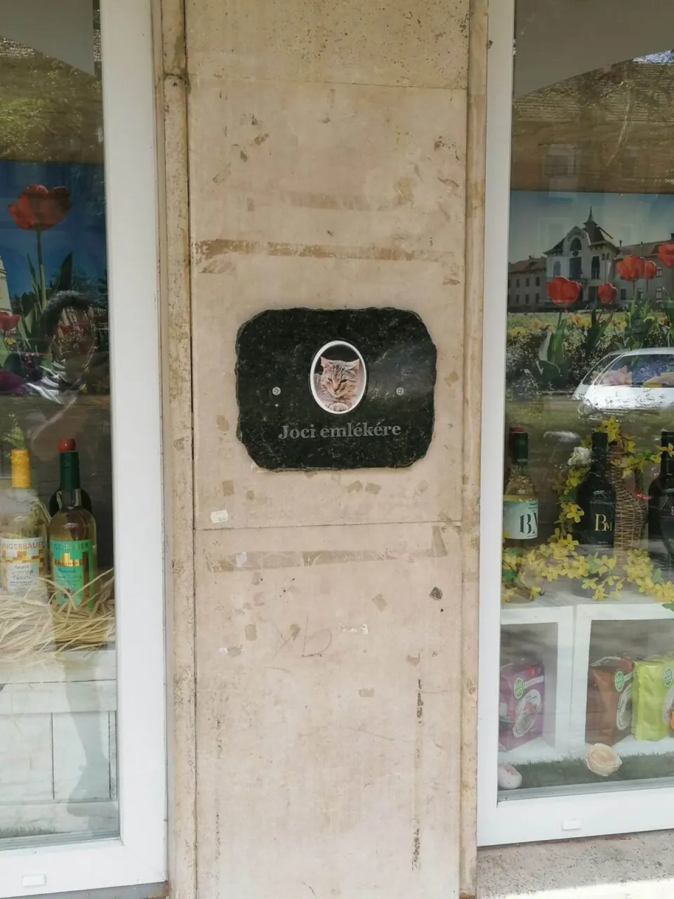 Tavaly azonban tragédia történt. Sajnos egy felelőtlen gazdi szájkosár nélkül sétáltatta arra nagy testű kutyáját, és mikor az rárontott Jocira, a gazda nem tudta megfékezni. Sajnos Joci nem élte túl a támadást. Gondozói megdöbbentek az eset kapcsán, megtörten vették tudomásul, hogy kis kegyeltjük nincs többé. Nem is tudták túltenni magukat a tragédián, hiszen Joci több volt egy egyszerű kóbor macskánál: ő összekovácsolta a Fő utcán élőket és dolgozókat. Joci etetése, cirógatása, gondozása jó ürügy volt egy kis beszélgetésre is. Ahogy telt az idő, Joci egyre inkább hiányozni kezdett a kis közösségnek. Így jött az az ötlet, hogy emléktáblát készítenek az emlékére.