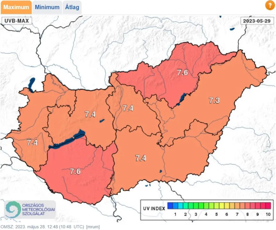 Ha mindez nem lenne elég, az esernyő mellé bátran készítsünk be naptejet is, az UV-sugárzás ugyanis nagyon erős lesz hétfőn!