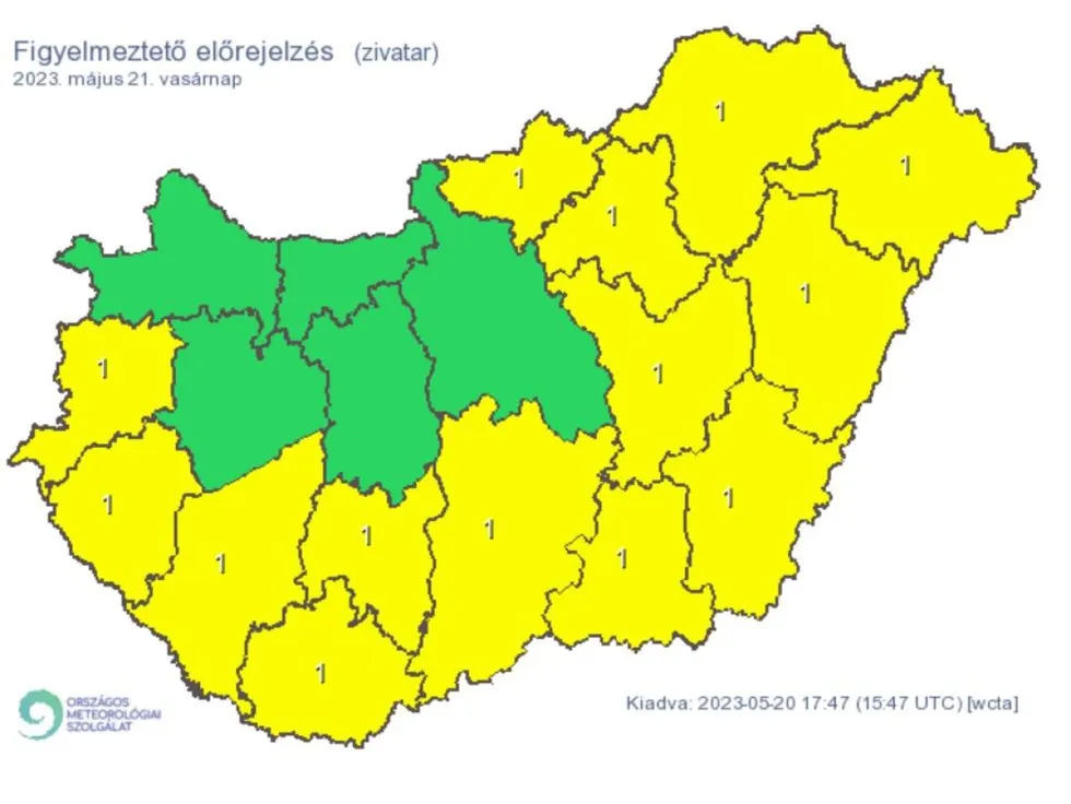 Az Országos Meteorológiai Szolgálat elsőfokú riasztást adott ki több vármegyére is a zivatarok miatt. Mint írták, elsődleges veszélyforrást a villámlás jelent, emellett esetenként szélerősödés, jégeső előfordulhat.