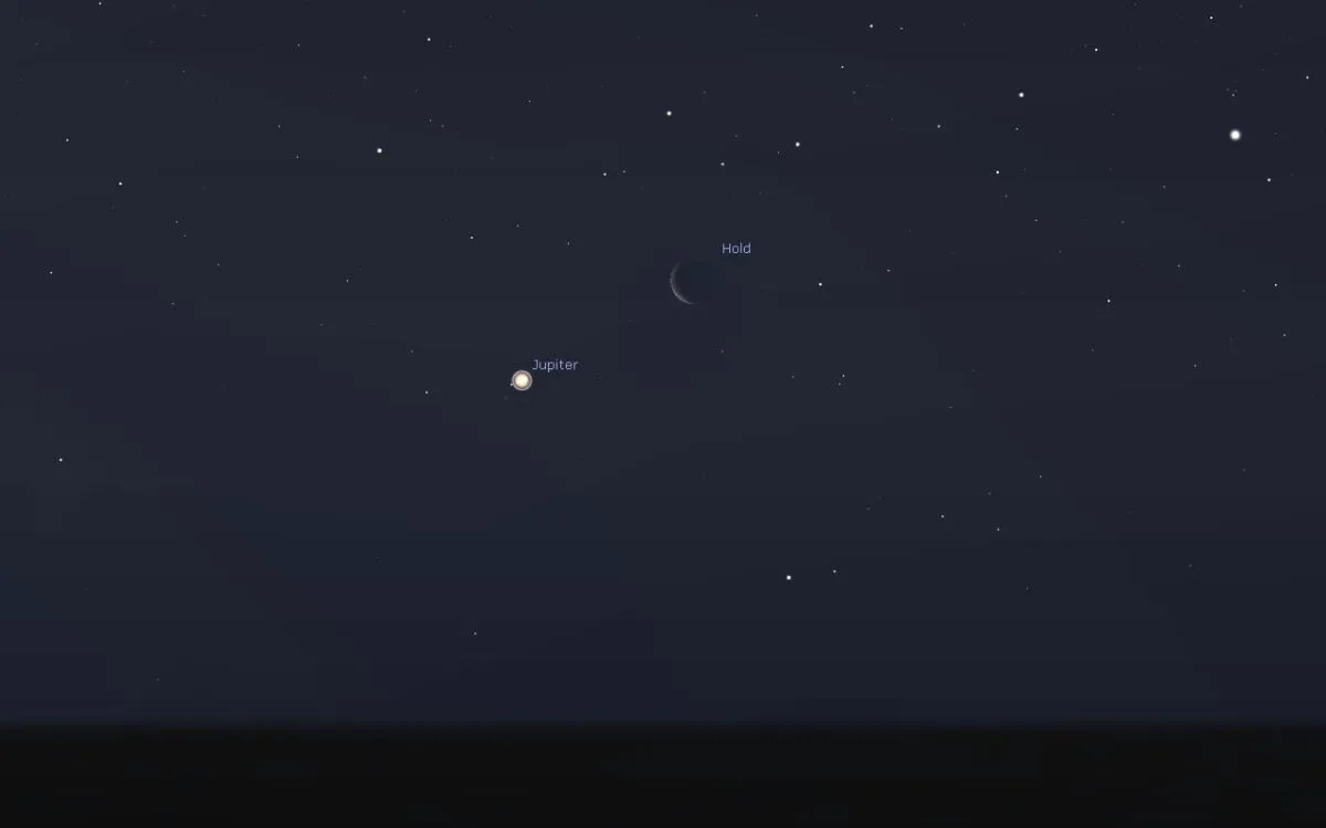 A Jupitert egyre jobban láthatjuk majd pirkadatkor, június 14-én ráadásul a 17 százalékos holdsarló is csatlakozik hozzá, mintegy 1,5 fok választja el őket. Akik szeretnének gyönyörködni a látványban, azoknak már hajnali három körül érdemes talpon lenniük. Bár a fényes Jupitert talán még egy órával később is megtaláljuk, köszönhetően a Hold közelségének, igazán szép fotókat csak korábban készíthetünk róluk.