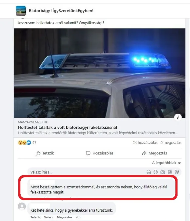 A kommentelők szerint a férfi egyértelműen öngyilkos lett, többen arról írnak, hogy felakasztotta magát. Az eset láthatóan sokkolta a biatorbágyiakat, hiszen gyakran túráznak a gyerekekkel is azon a részen, ahol az eset történt.