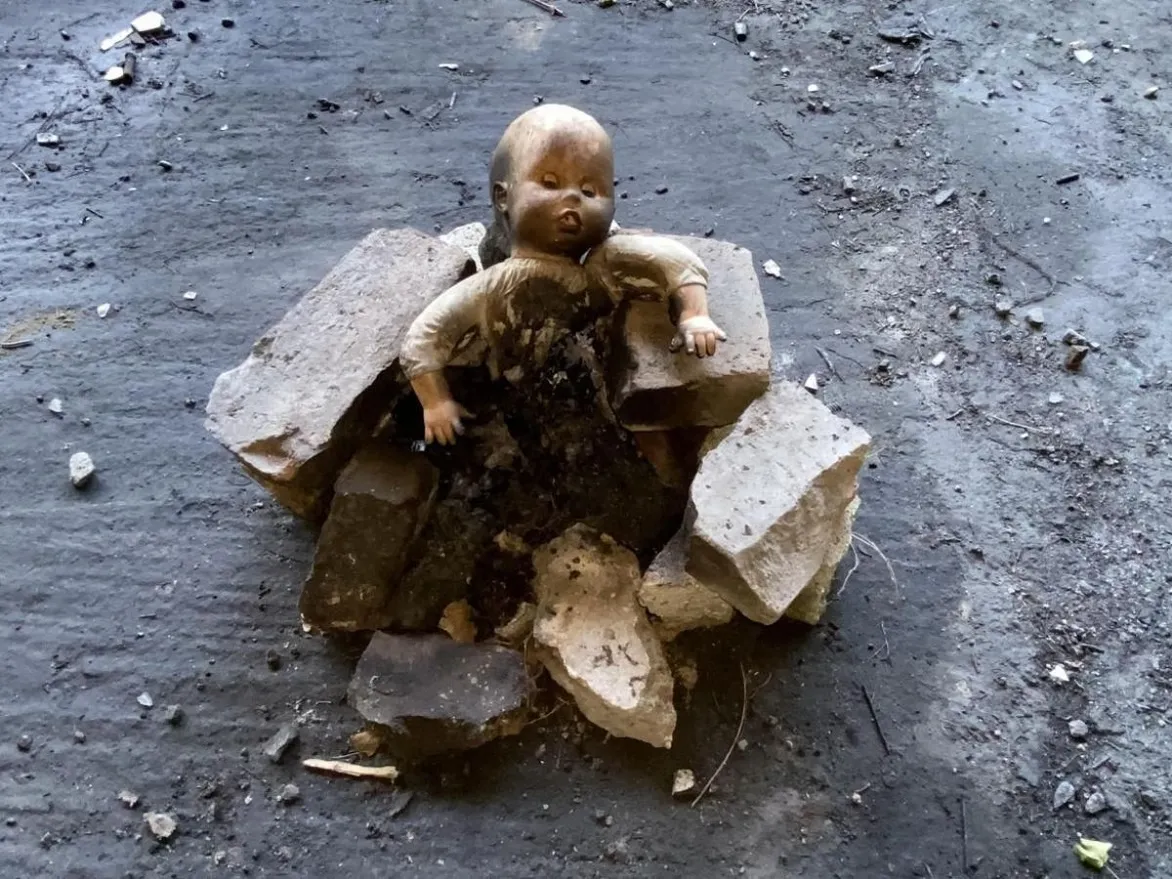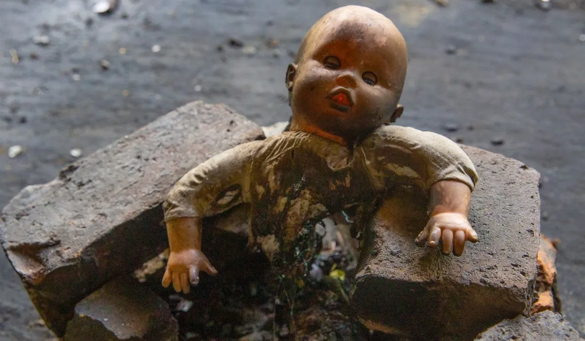 Az eleve nyomasztó hangulatú hely egyik betonsilójában furcsa kép fogadta a Metropol munkatársait. Egy kövekből kirakott tűzrakóhely közepébe valaki egy játékbabát rakott, amit aztán meggyújtott.