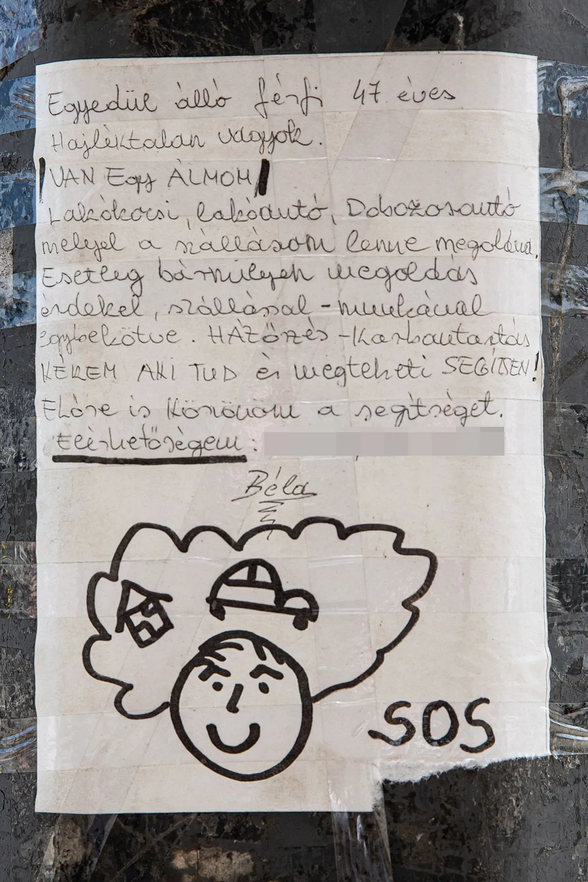 "Él bennem a remény, hogy a sorom jobbra fordul" – utcai hirdetésben keres állást és otthont a hajléktalan Béla