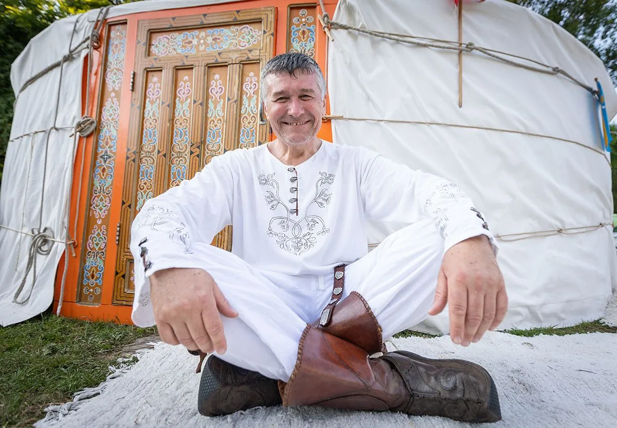 Az ünnep krónikása, hírvivője, Daróczi Zoltán megmutatta a jurtákat és beszélt az ünnep hagyományőrző jelentőségéről.