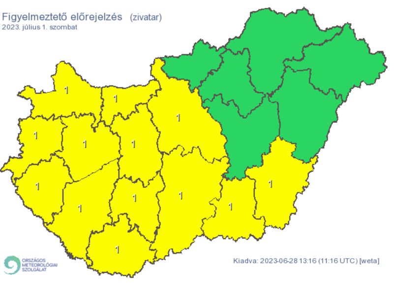 Szombatra már most kiadták a figyelmeztető előrejelzést, ugyanis egy hidegfront éri el hazánkat. Szombaton nyugat, délnyugat felől erősen megnövekszik a gomolyfelhőzet, és többfelé alakul ki eső, zápor, főleg délen zivatar is. 21-29 fok közé csökken a hőmérséklet - írja a Köpönyeg.