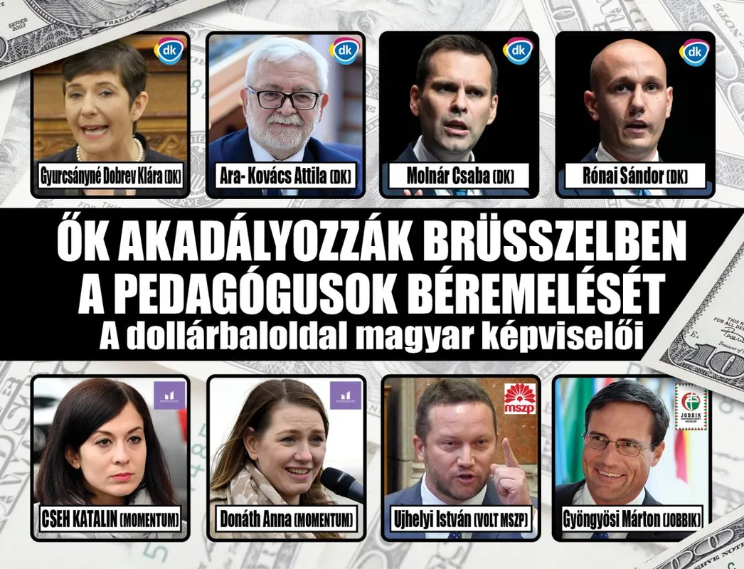 A dollárbaloldal magyar szereplői, akik havi három-négy millió forintot tesznek zsebre, hónapok óta mindent megtesznek azért, hogy a magyaroknak járó EU-s pénzeket ne fizesse ki Brüsszel, és így a pedagógusok bére semmiképpen se érhesse el a nekik járó havi 800 ezer forintot. A DK és Momentum politikusai erőszakos tüntetéseket szerveznek, gyerekeket és fiatalkorúakat használnak fel céljak eléréséhez.