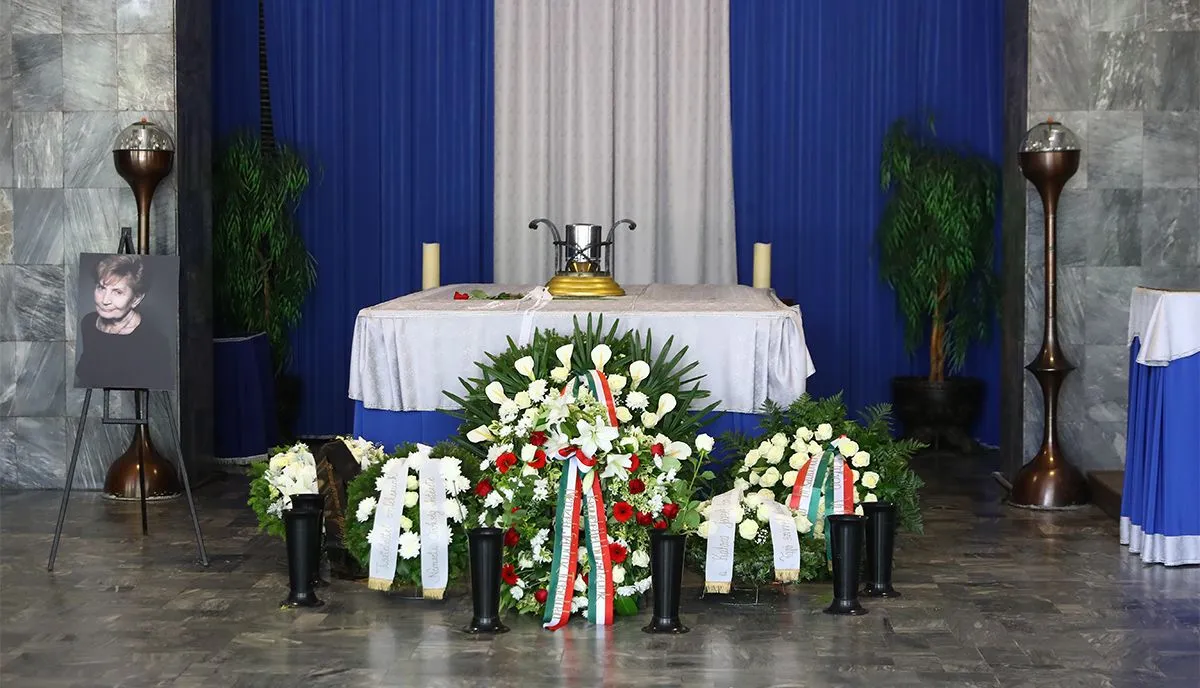 A temetésre Orbán Viktor nem tudott elmenni, mivel Szerbiában tárgyal, de egy rózsákkal teli koszorút küldött a színésznő búcsúztatására.