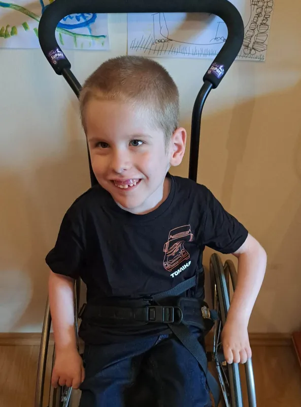 Tomikát szülei robotterápiára is hordják, amivel nagyon hatékonyan tudják edzeni a kisfiú izomzatát.