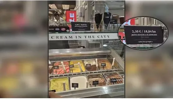 Tina, egy kétgyermekes édesanya Zárában egy tengerparti bevásárlóközpontban felfedezett egy fagylaltozót, ahol egy gombóc fagyi 2,5 euróba került. Ehhez jött még 40 cent a csomagolásért, 30 cent a csokidíszítésért, ami így 7,90 euró lett volna. Ez drágább, mint Svájcban - tette hozzá.