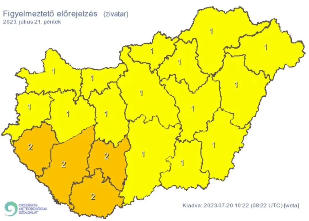 Még szinte föl sem ocsúdtunk a kánikulából, miután egymás után két nap is megdőlt az éjszakai melegrekord a fővárosban, máris újabb próbatétel elé állít az időjárás: az Országos Meteorológiai Szolgálat az egész ország térképét citrom- és narancssárgára színezte a várható zivatarok miatt. A legdurvábbnak négy délnyugati vármegyénkben ígérkezik a helyzet, ott a várható felhőszakadások miatt is kiadták a figyelmeztetést.