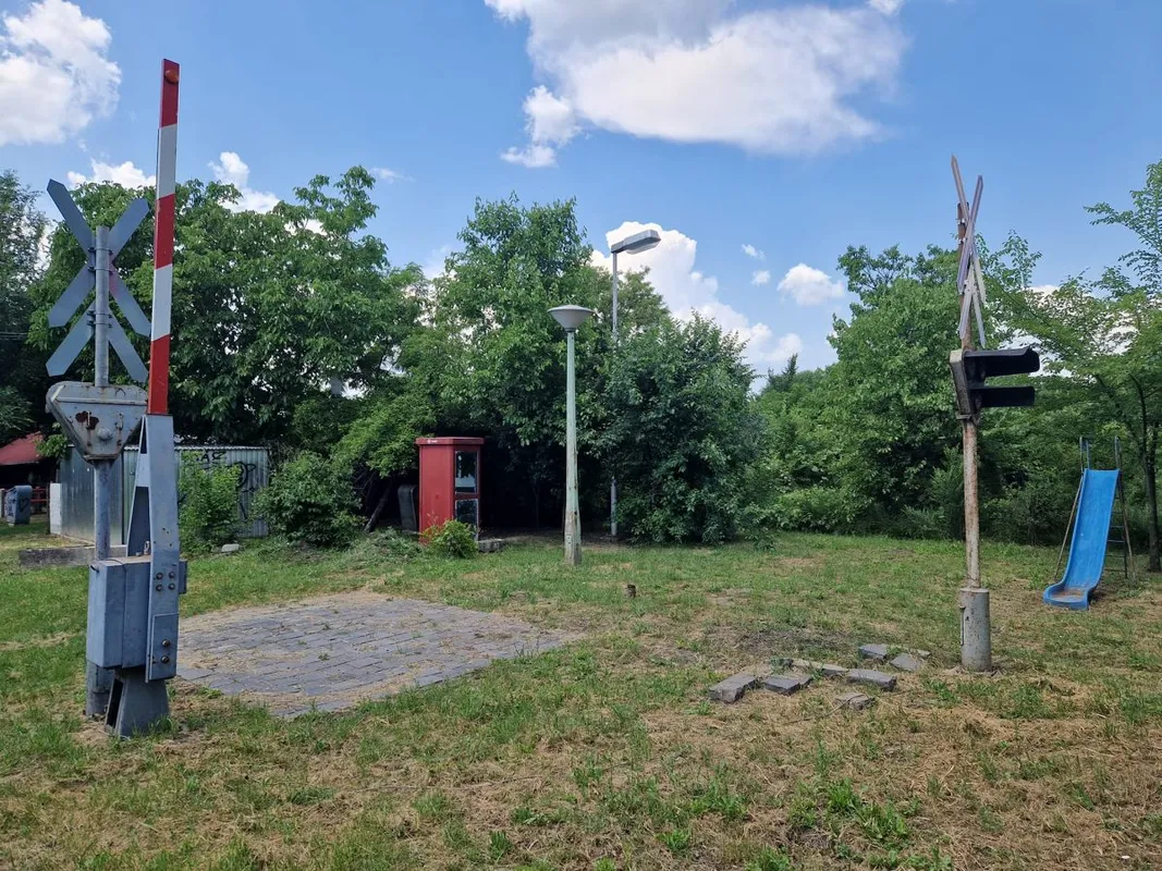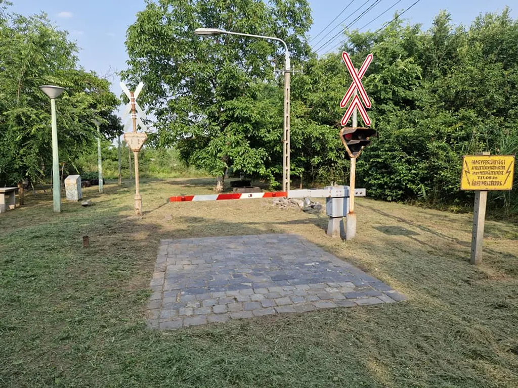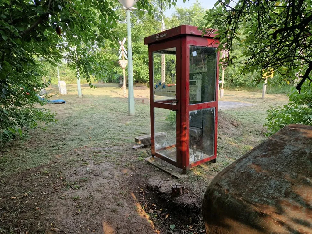Telefonfülke, benzinkút és sorompó is van