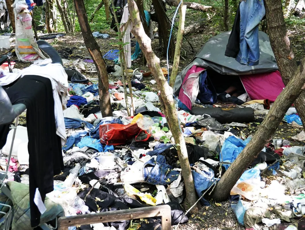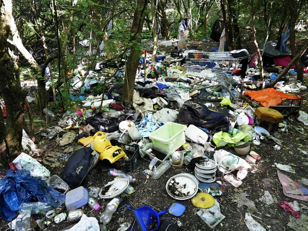 Az egykor idilli fás-bokros terület ma már nem ismerhető fel. A csövesek itt találtak szálláshelyre. Sátrakban, vackokban pihenik ki a napközben elfogyasztott kannásbort, vagy éppen egy nagyobb adag kábszertől ájulnak el. A sátrak körül hatalmas szeméttenger árasztotta el az amúgy idilli csendes kis erdőt. A félig összeborult sátrakból kilógó koszos zoknis lábak látványa teszi még szürreálisabbá a pokoli tanyát.