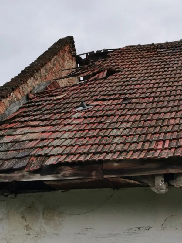 Lényegében eltörte a vihar az elkorhadt gerendát, majd megmozdította az egész tetőt. A lécekkel együtt a cserepek is beszakadtak. A katasztrófavédelem is kijött, majd az önkormányzattól a polgármester és hivatali személyek, akik megvizsgálták a házat és egyből lakhatatlanná nyilvánították. Azt mondták, ki kell költöznöm, de én nem adom fel a reményt!