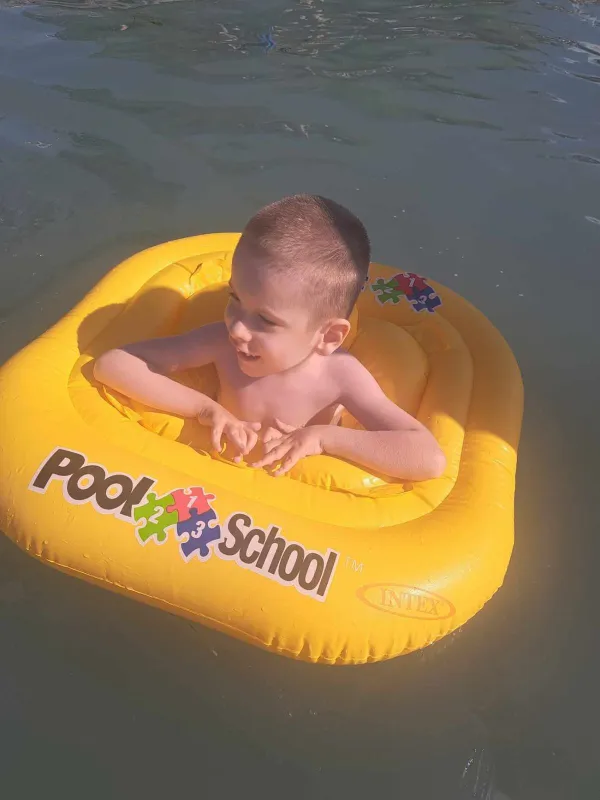 A vízben sokkal könnyebben mozog, sokkal több mindenre képes, mint a szárazföldön. Ezért is nagyon-nagyon élvezi. Szerencsére az időjárás is többnyire mellettünk állt és annyit volt kisfiunk a vízben, amennyit csak lehetett