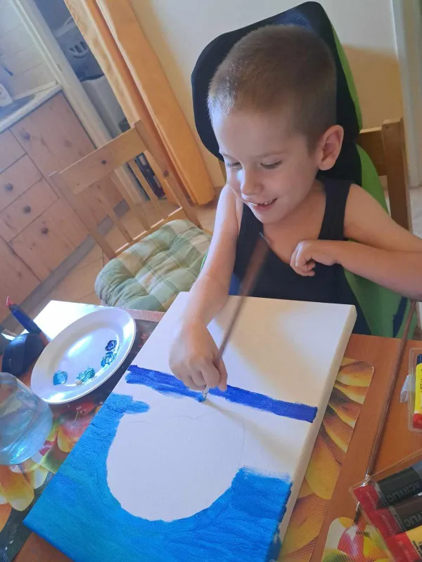Amint Tomika meglátta a festékeket és az ecseteket, hatalmas mosoly jelent meg az arcán. Még olyan 3 éves lehetett, amikor Anikó ajándékba kapott egy online élményfestést. Kisfia választotta ki a képet és az egyszerűbb dolgokat édesanyjával együtt festették meg. A gyermek akkor szeretett bele a festésbe, azóta pedig ez a szerelem töretlen.