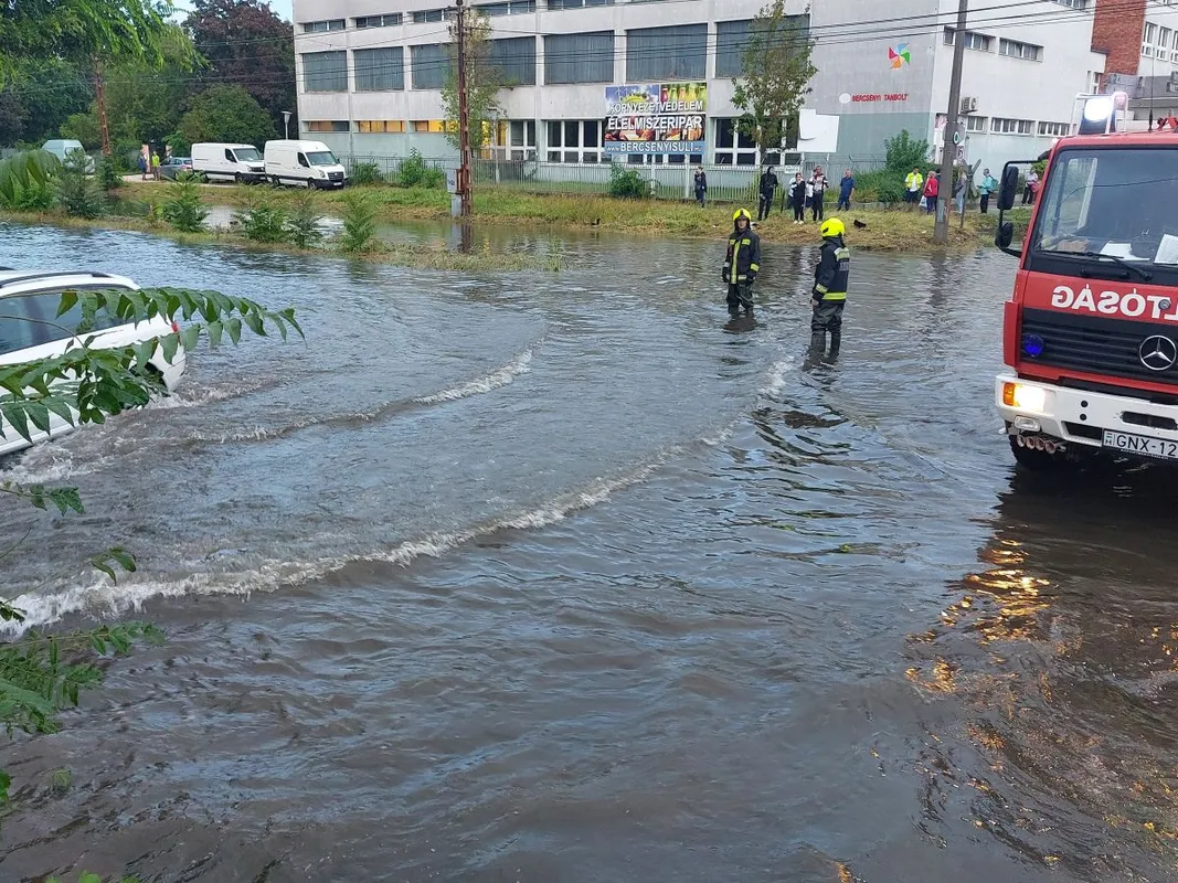 Maglódon is hasonló a helyzet, a csatornák képtelenek voltak elnyelni a brutális mennyiségű esőt. Oda a tűzoltók vonultak ki, hogy segítsenek, de a fotókon jól látszik, hogy az autók lökhárítójáig ér a víz.
