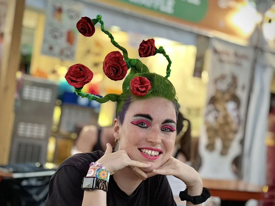 A látványos hajkoronák a híres Grincs filmben szereplő kislány, Cindy Lou haját idézik. Egy biztos: ha ilyen viseletet választunk az esti bulira, garantáltan felfigyelnek majd ránk. Az extravagáns hajakat feltűnő színekkel, díszekkel és vagány sminkkel párosítják a fesztiválozók, hogy biztos legyen a frizura sikere.