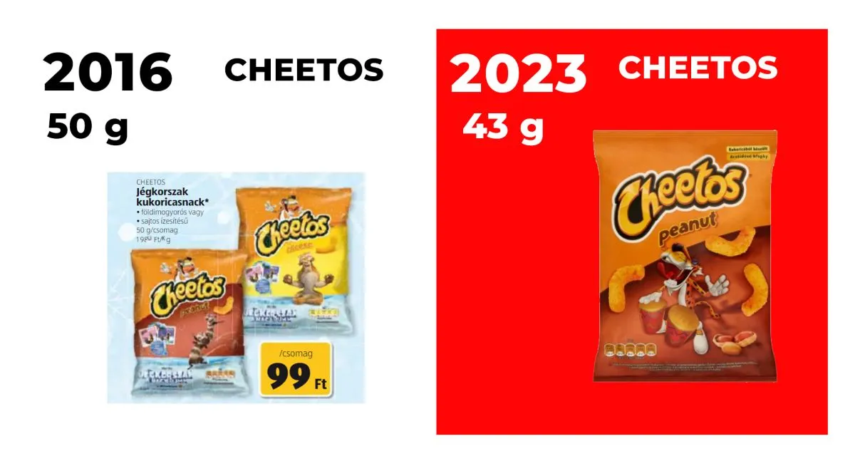 Az emberek csak nagyon ritkán veszik észre, hogy egy általuk gyakran vásárolt termék hirtelen összement. A gyártók a méretcsökkentést rendszerint nagyon trükkösen, mindenféle figyelmeztetés nélkül oldják meg. A Ripost munkatársai most azonban fellapozták a pár évvel korábbi reklámújságokat, és megnéztük, hogy mely termékek zsugorodtak össze az évek során.