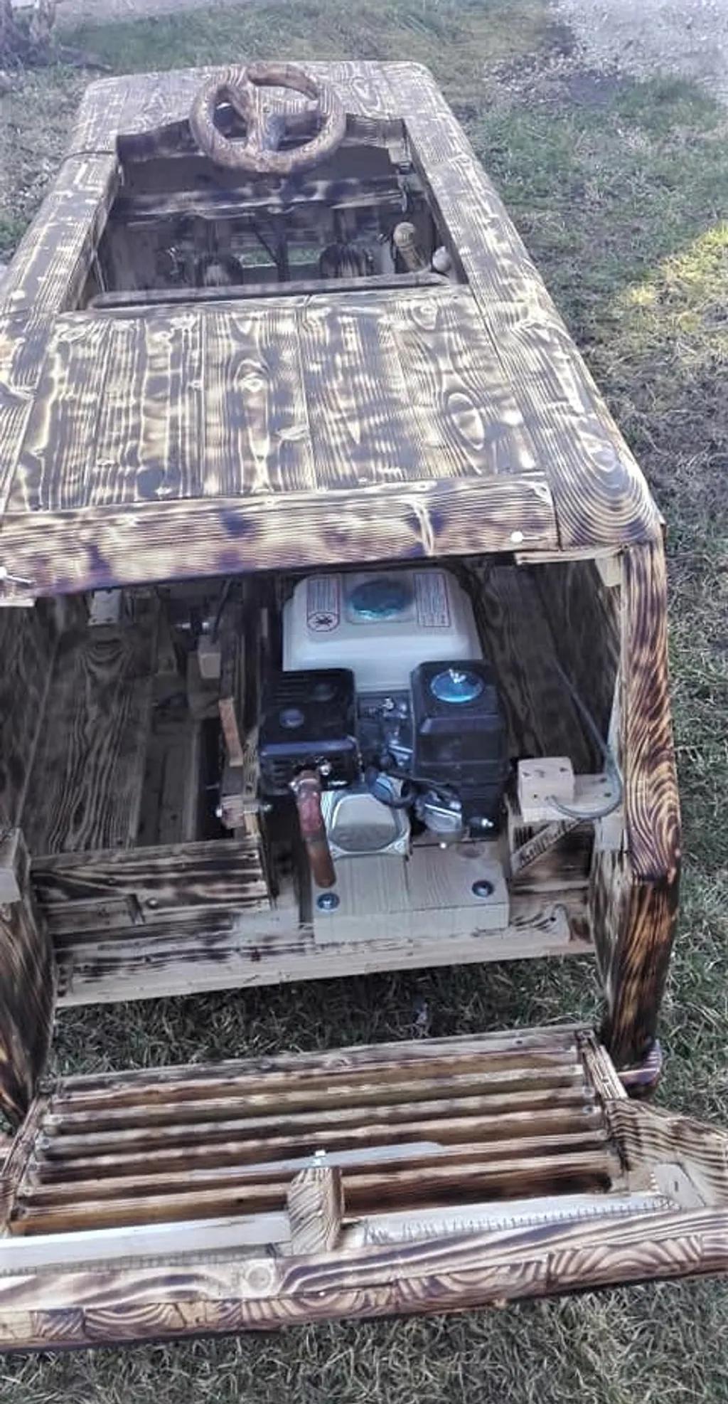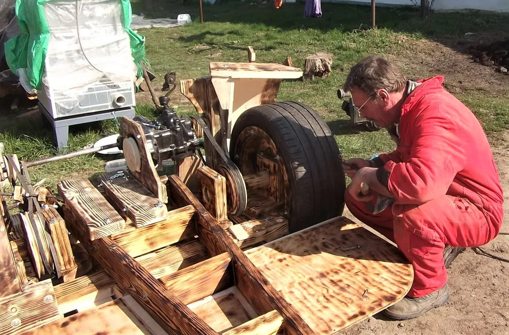 Nem asztalos, csak szereti a fát. Gépkezelőként dolgozik és szabadidejében építi a különleges alkotásokat. Az elmúlt húsz éveben már több, tucatnyi jármű került ki a keze közül. És mindegyik fából. Csak annyi fémet épít beléjük, ami ahhoz szükséges, hogy működőképesek legyenek.