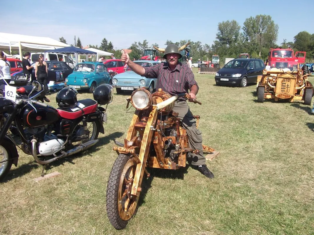 - meséli büszkén István, aki a motor, a csavarok gumik és szíjak kivételével minden fából készít el, még a váltót is. Most épp egy dragster megépítésével foglalatoskodik, ami feltehetően a télen fog elkészülni, mert rengeteg időt emészt fel az elkészítése. István hétköznap Budapesten dolgozik, így a hobbijának csak hétvégén a szabadidejében tud hódolni. Először egy kerékpárt és egy egyszerűbb motort készített el, aztán nem volt megállás. Komolyabb motorok, autók, és traktor is következett.