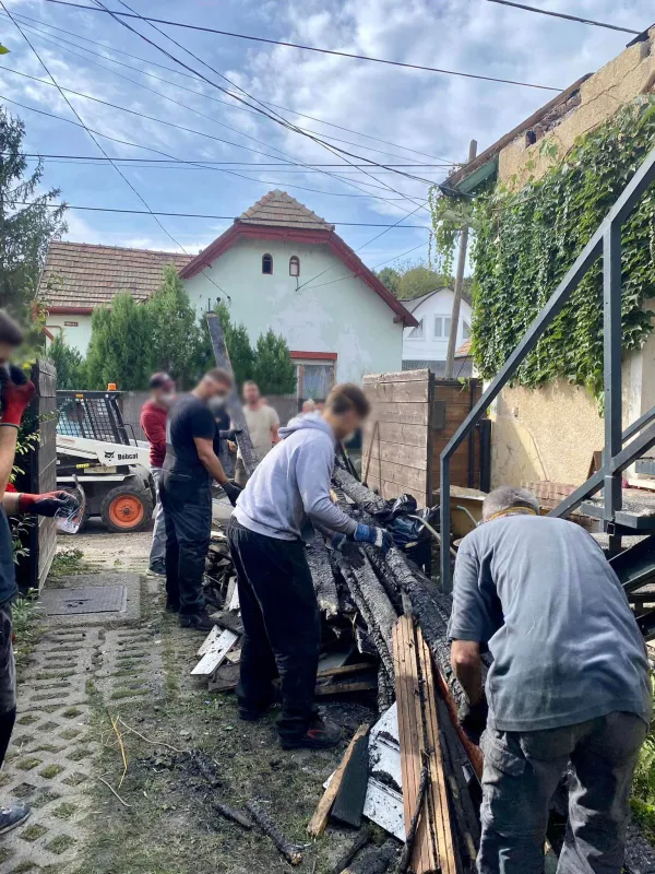 Október 7-én szombatra szerencsére olyan sokan jelentkeztek, hogy szívesen segítenének, amiben csak tudnak, hogy szinte egyetlen nap alatt eltakarították a tűz következtében megsemmisült tetőszerkezet romjait. A ház alsó szintje az oltás következtében teljesen elázott, így bőven lesz még dolga a családnak.