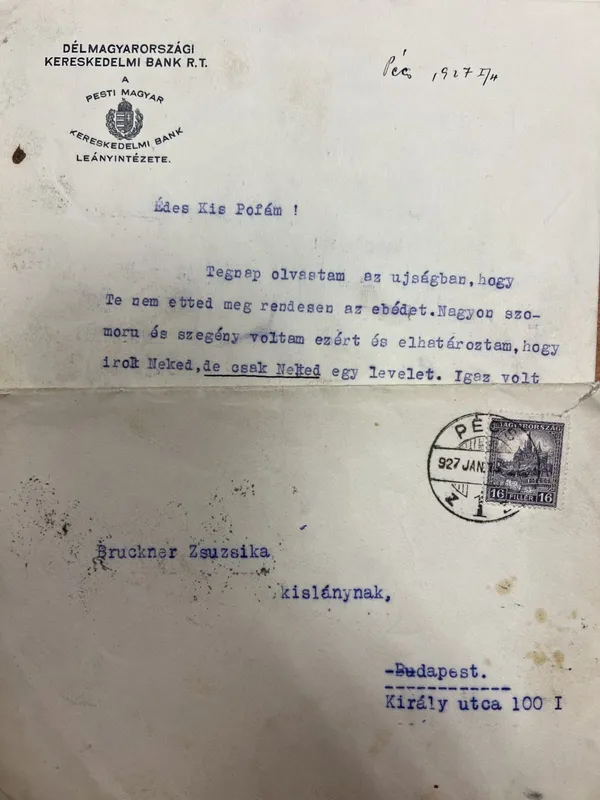 Krisztina egy gyűjtőtől vásárolta meg a megható, családi levelet, melyben egy édesapa üzen kislányának. Most a címzettet, Bruckner Zsuzsikát, vagy az ő leszármazottait keresi, hogy a levél visszakerüljön címzettjéhez.