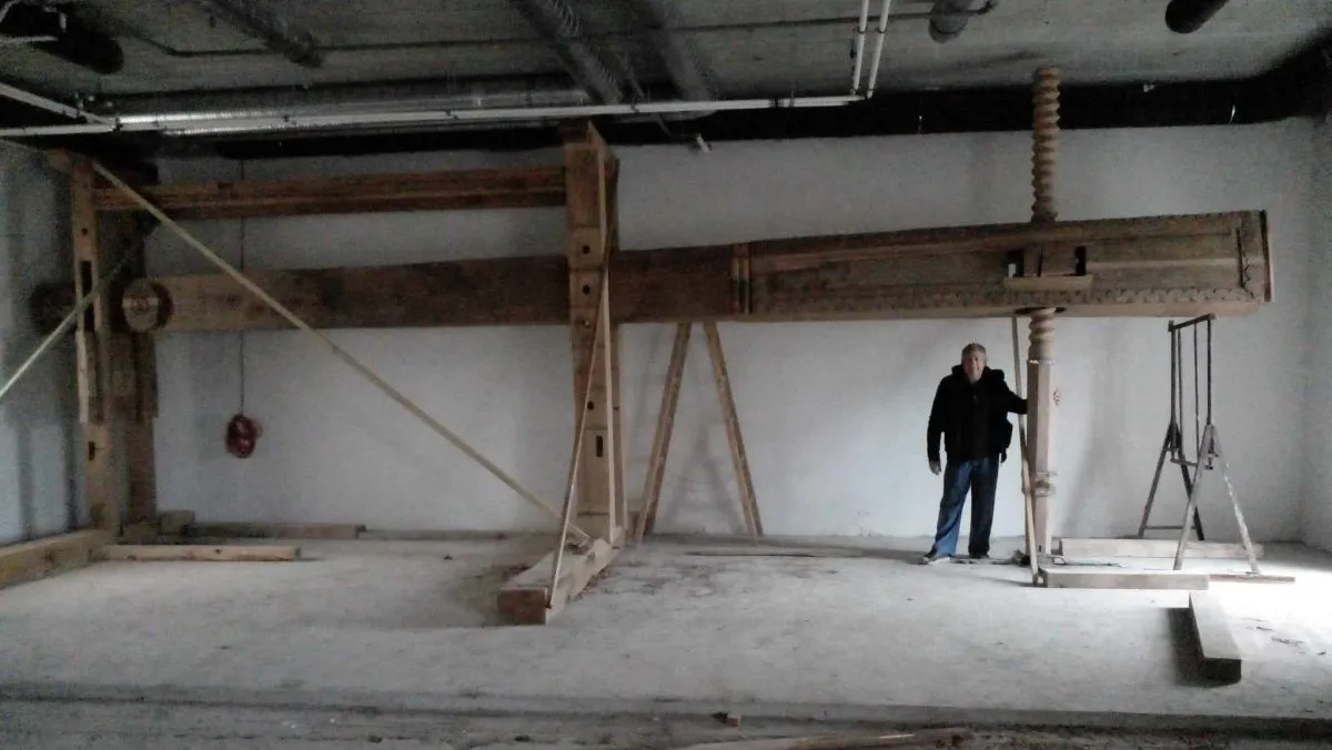 Különösen érdekes, hogy egyetlen csavar sem volt a hatalmas szőlőprésben, pusztán fa csapok tartották össze. A tízméteres fesztávolságú eszköz csigája szilfából készült, mert az a legerősebb alapanyag. Centiről-centire újra kellett faragni, természetesen kézzel