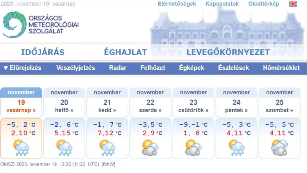 Lássuk, mit ír a Köpönyeg.hu meteorológiai portál előrejelzése!