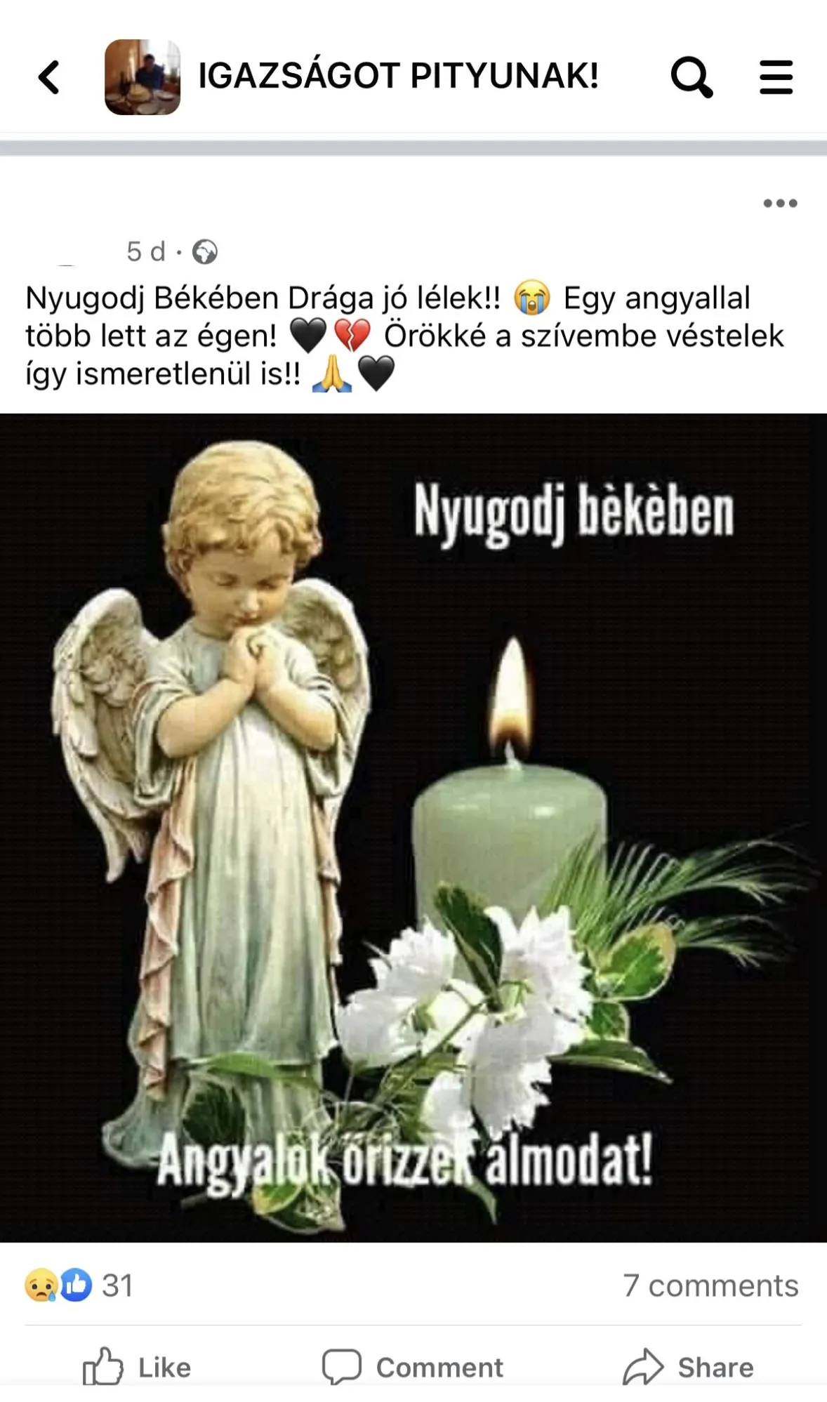 „Nyugodj békében drága gyermek, most már nem bánthat senki, most már nyugodtan pihenhetsz. Tudnod kell, hogy nagyon sok ember a szívébe zárt téged. A családnak őszinte részvétem. Pistike, te drága lélek, az én szememben egy hős vagy, aki mosolyával mindenki szívébe belopta magát. Nem ismertelek, de sosem felejtelek el. Nyugodj békében, drága” – írta egy másik hozzzászóló.