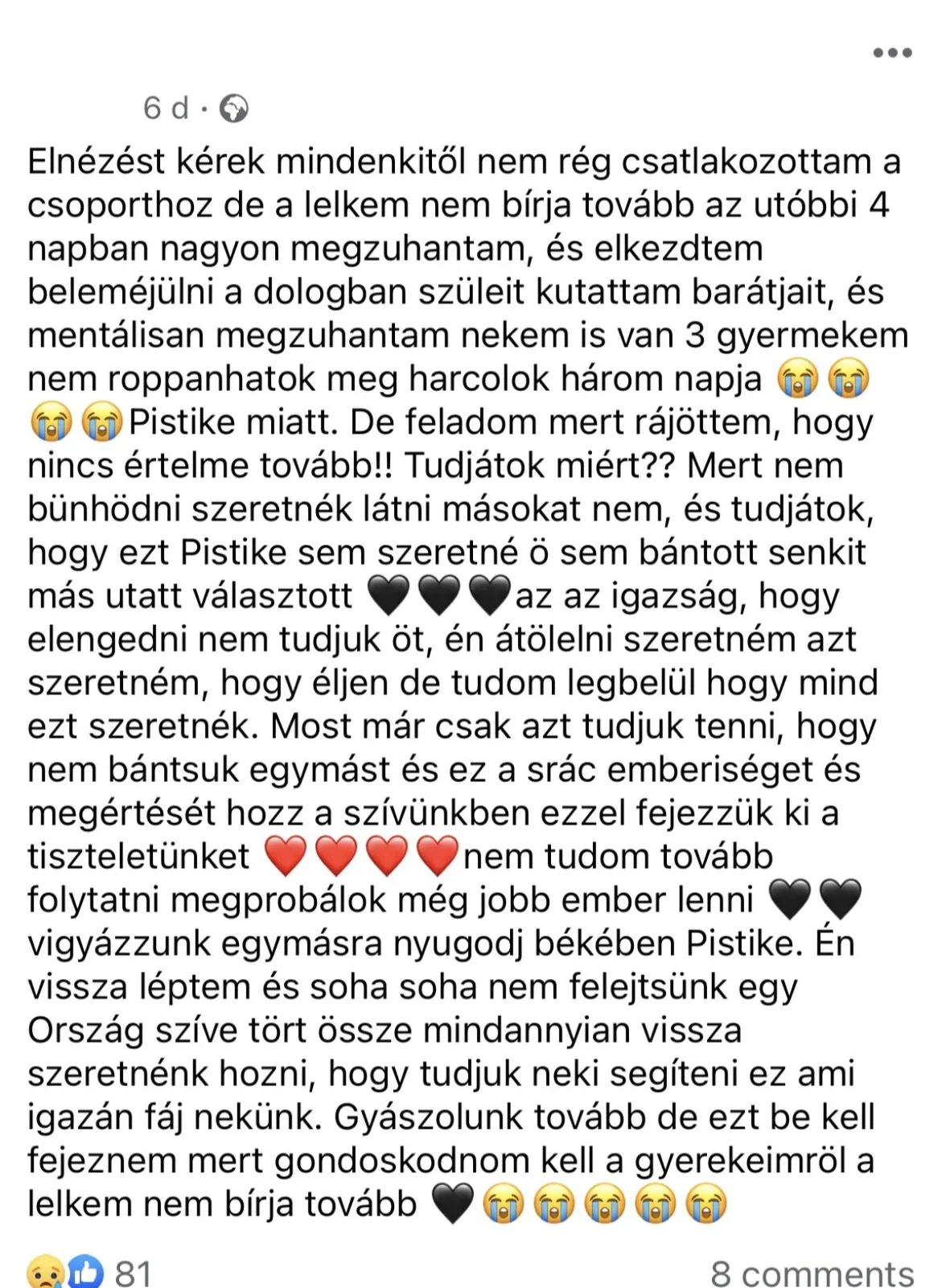 Pistikét nem ismerő, felnőtt, családos embereket is annyira megviselt a tragédia, hogy az interneten öntötték ki szívüket.