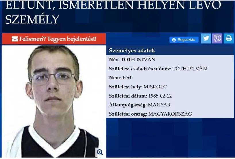 2004 decemberében az akkor 19 éves István fiútestvérével és barátnőjével ment szórakozni a sárospataki diszkóba. A fiatalok azt beszélték meg, hogy ha szétválnának útjaik, akkor reggel fél 6 és hat körül találkoznak a szórakozóhely parkolójában. Reggel azonban az idősebb testvér hiába várta Istvánt a megbeszélt helyen, a fiúnak nyoma sem volt. Bátyja így ismerősökkel indult haza, és akkor látta meg öccse autóját Bodrogkeresztinél. Az autó a forgalommal szemben állt, az eleje és a szélvédője össze volt törve, István iratai az ülésen hevertek, a mobiltelefonja pedig a kesztyűtartóban volt, kikapcsolva. A fiúnak azonban se híre, se hamva nem volt az autó környékén. Nem sokkal azután, hogy az autónál megkezdődött a rendőrségi helyszínelés, az egyenruhások rádiójukon bejelentést kaptak, hogy tőlük 15 kilométerre egy szemtanú látott egy alakot a Tokaji hídról a vízbe ugrani. Ez a szemtanú később azt mondta István édesanyjának, hogy talán a fiát látta…. Istvánnak azóta nincs nyoma, senki sem látta, senki sem hallott felőle. Édesanyjának el kellene fogadnia, hogy fia öngyilkos lett, csak nem találták meg a holttestét, de az asszony nem nyugszik, amíg nem kap kielégítő válaszokat kérdéseire.